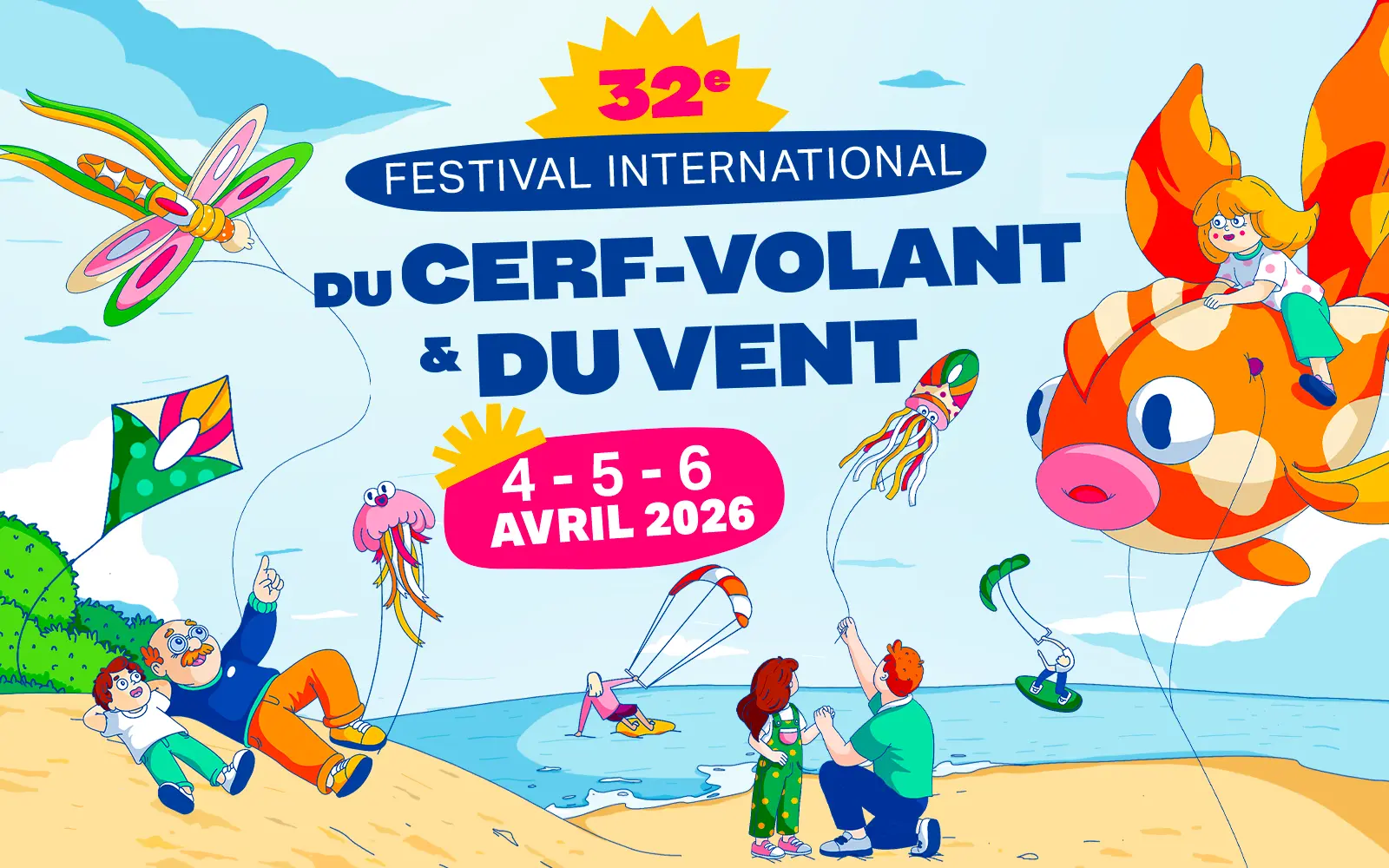Treffpunkt am 4., 5. und 6. April 2026 am Strand von Châtelaillon-Plage für die 32. Ausgabe des Internationalen Drachen- und Windfestivals, drei poetische, immersive und kreative Tage, die Sie mit der ganzen Familie erleben können.